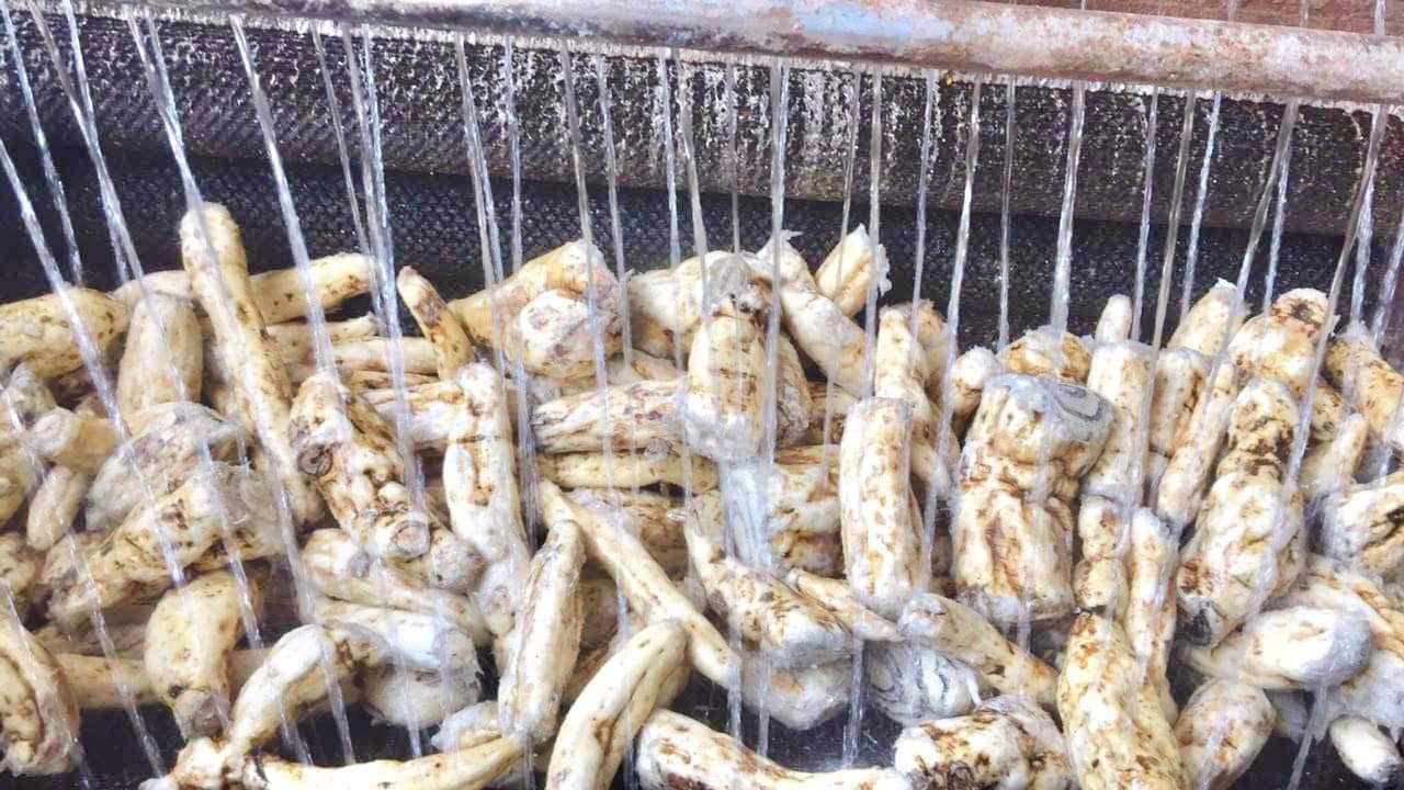 Quy trình truyền thống: xay, lọc kỹ qua nhiều lớp vải sạch, phơi trong nắng tự nhiên cho bột sắn dây khô và đượm hương, tạo nên thành phẩm tinh khiết, mịn, thơm dịu.