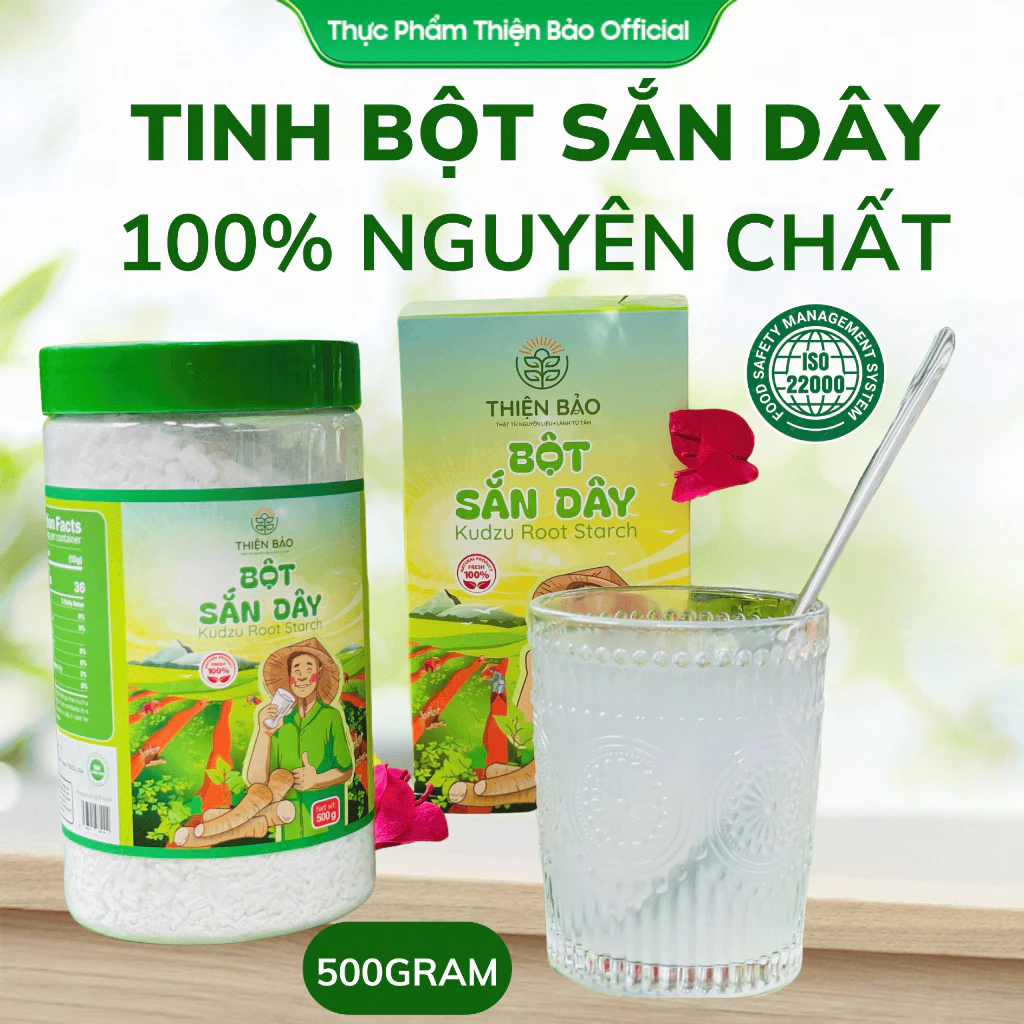 Được làm từ củ sắn dây trồng tại vùng đất Quảng Trị, sản phẩm mang đến hương vị thuần khiết và chất lượng nguyên bản từ thiên nhiên. Quy trình sản xuất tỉ mỉ giúp tạo nên loại tinh bột trắng mịn, không mùi, vị nhẹ tự nhiên.